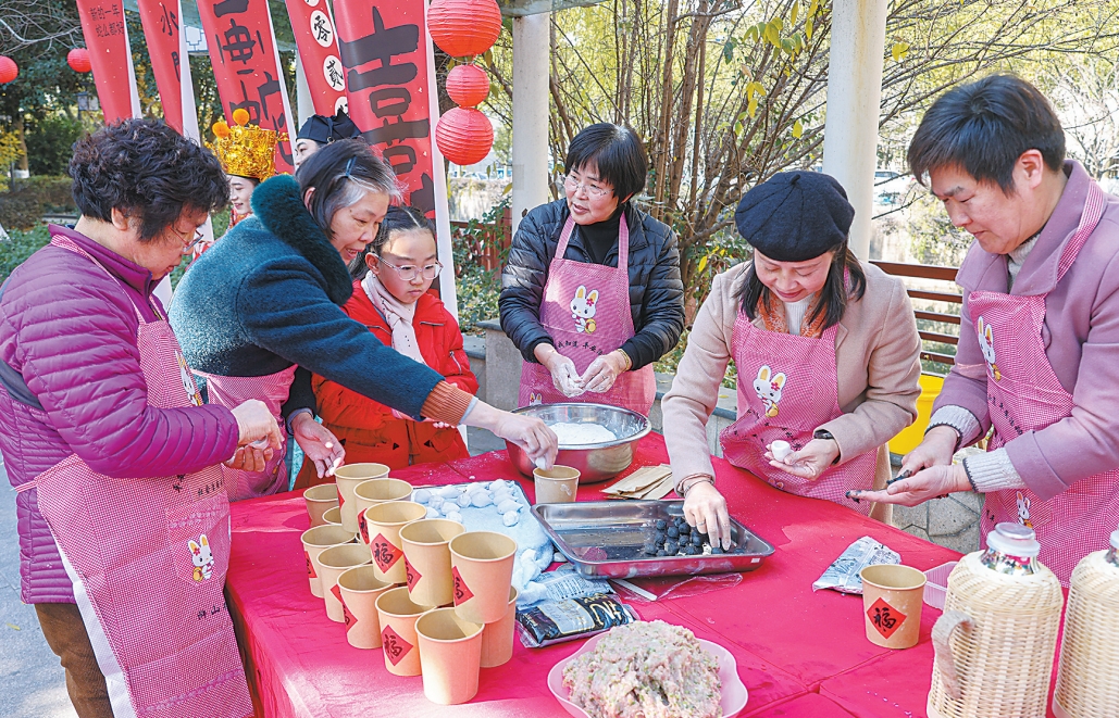日前,浒山街道古塘社区联合辖区商家、浒山街道汉韵雅社工作室,在水门路用一场街“宴”开启新一年的好运。放米炮、包汤圆、财神送福……传统年味满满的活动现场,将街面化作年味集市,让居民们体验到热闹的过年氛围。慈晓客户端记者 蒋亚军 通讯员 陈璐佳
